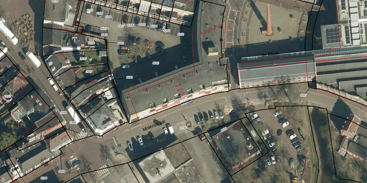 Het perceel waarop Wielstraat 40 staat heeft een oppervlakte van 3412 m². Dit is een zeer groot perceel. De perceeloppervlakte wordt geregistreerd door het Kadaster. Gedetailleerde informatie over de maten van dit perceel kunt u vinden in het rapport Kadastrale kaart met maatvoering van Wielstraat 40.