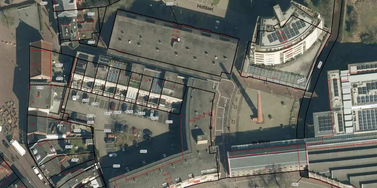 Het perceel waarop Wielstraat 78 staat heeft een oppervlakte van 3412 m². Dit is een zeer groot perceel. De perceeloppervlakte wordt geregistreerd door het Kadaster. Gedetailleerde informatie over de maten van dit perceel kunt u vinden in het rapport Kadastrale kaart met maatvoering van Wielstraat 78.