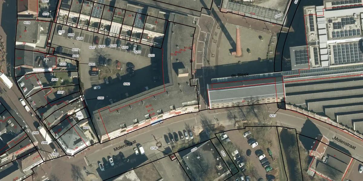 Het perceel waarop Wielstraat 80 staat heeft een oppervlakte van 3412 m². Dit is een zeer groot perceel. De perceeloppervlakte wordt geregistreerd door het Kadaster. Gedetailleerde informatie over de maten van dit perceel kunt u vinden in het rapport Kadastrale kaart met maatvoering van Wielstraat 80.