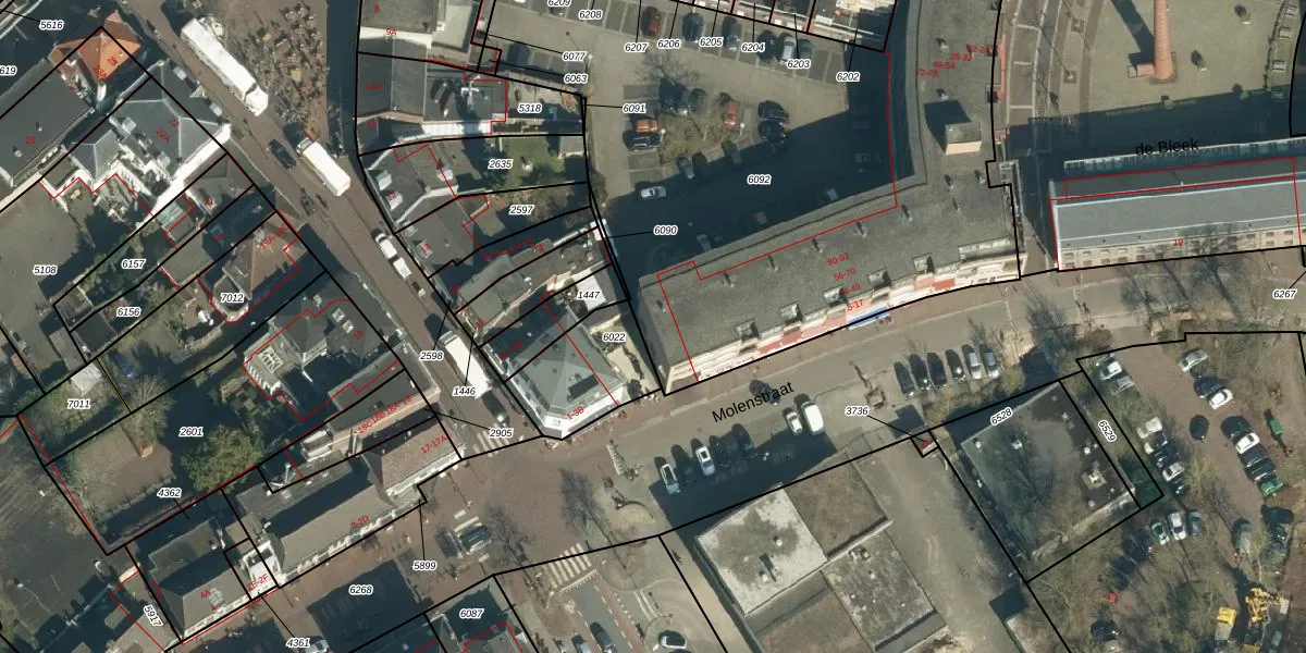 Het perceel waarop Wielstraat 92 staat heeft een oppervlakte van 3412 m². Dit is een zeer groot perceel. De perceeloppervlakte wordt geregistreerd door het Kadaster. Gedetailleerde informatie over de maten van dit perceel kunt u vinden in het rapport Kadastrale kaart met maatvoering van Wielstraat 92.