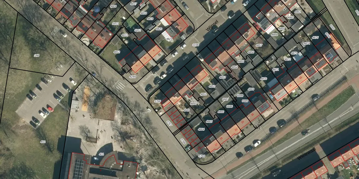 Het perceel waarop Wijnsel 4 staat heeft een oppervlakte van 159 m². Dit is een middelgroot perceel. De perceeloppervlakte wordt geregistreerd door het Kadaster. Gedetailleerde informatie over de maten van dit perceel kunt u vinden in het rapport Kadastrale kaart met maatvoering van Wijnsel 4.