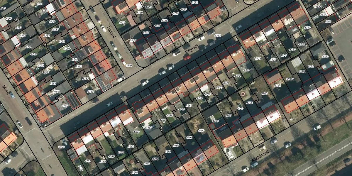 Het perceel waarop Wijnsel 48 staat heeft een oppervlakte van 172 m². Dit is een middelgroot perceel. De perceeloppervlakte wordt geregistreerd door het Kadaster. Gedetailleerde informatie over de maten van dit perceel kunt u vinden in het rapport Kadastrale kaart met maatvoering van Wijnsel 48.
