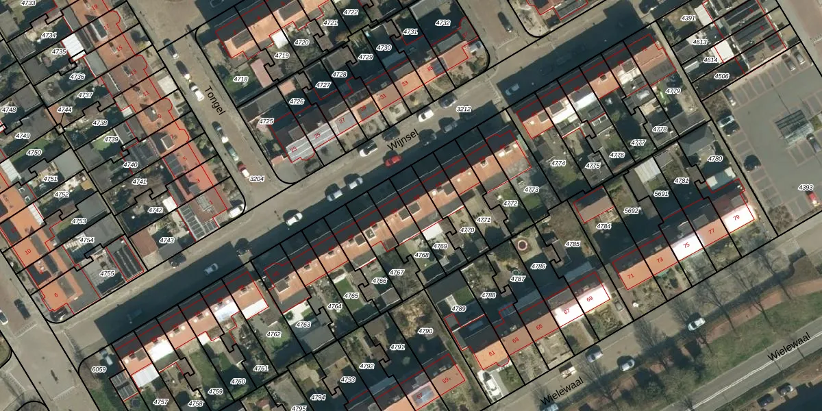 Het perceel waarop Wijnsel 52 staat heeft een oppervlakte van 171 m². Dit is een middelgroot perceel. De perceeloppervlakte wordt geregistreerd door het Kadaster. Gedetailleerde informatie over de maten van dit perceel kunt u vinden in het rapport Kadastrale kaart met maatvoering van Wijnsel 52.
