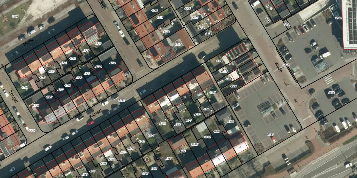 Gebruik de zoekbalk of klik op een perceel voor informatie over de adressen binnen dit perceel.