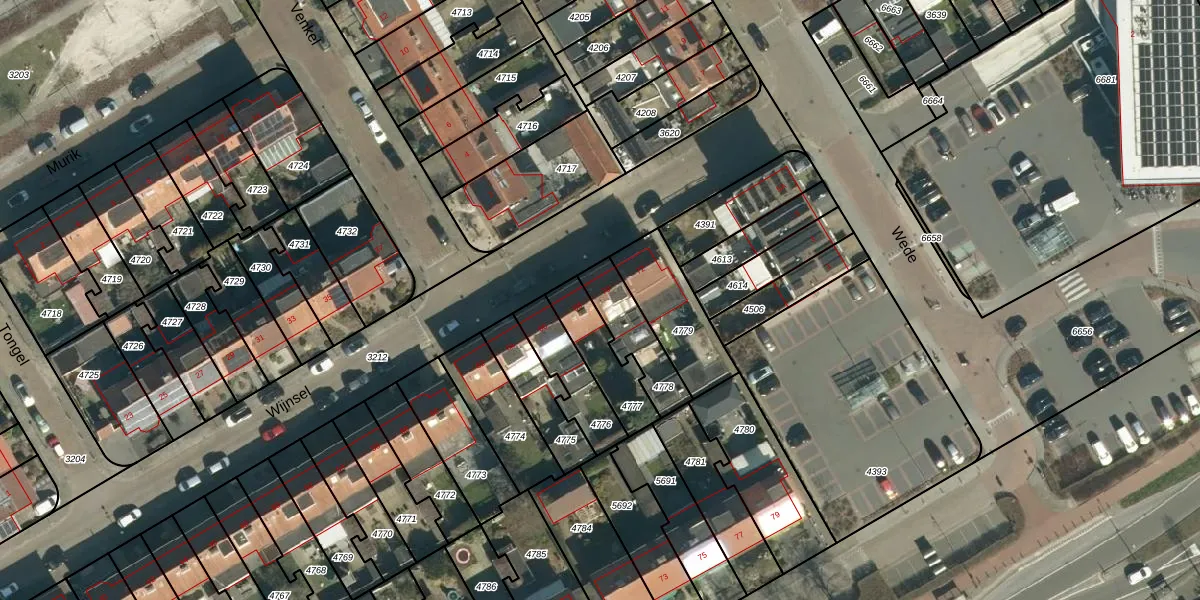 Gebruik de zoekbalk of klik op een perceel voor informatie over de adressen binnen dit perceel.
