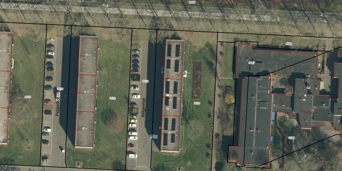 Het perceel waarop Wilgenhof 25 staat heeft een oppervlakte van 2940 m². Dit is een zeer groot perceel. De perceeloppervlakte wordt geregistreerd door het Kadaster. Gedetailleerde informatie over de maten van dit perceel kunt u vinden in het rapport Kadastrale kaart met maatvoering van Wilgenhof 25.