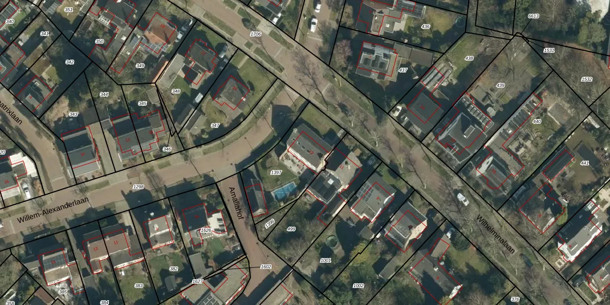 Het perceel waarop Wilhelminalaan 13 staat heeft een oppervlakte van 643 m². Dit is een groot perceel. De perceeloppervlakte wordt geregistreerd door het Kadaster. Gedetailleerde informatie over de maten van dit perceel kunt u vinden in het rapport Kadastrale kaart met maatvoering van Wilhelminalaan 13.