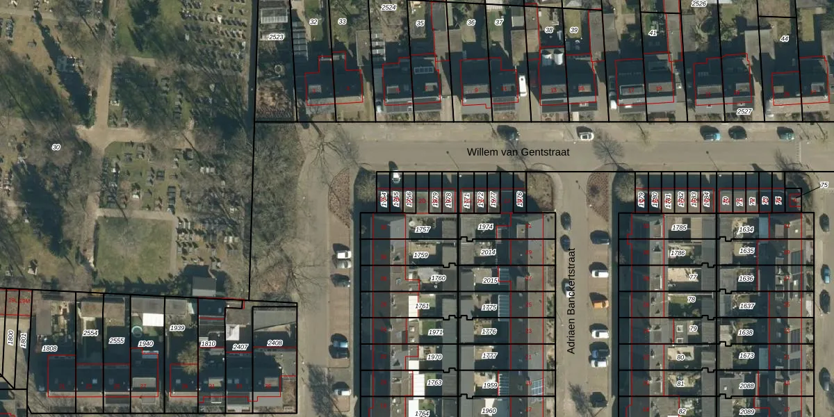 Willem van Gentstraat 2-D is gelegen op kadastraal perceel GDP00F1757. Deze kadastrale aanduiding is uniek en wordt gebruikt door het Kadaster om eigendomsrechten en andere zakelijke rechten vast te leggen. Het perceel maakt onderdeel uit van de kadastrale gemeente Geldrop.