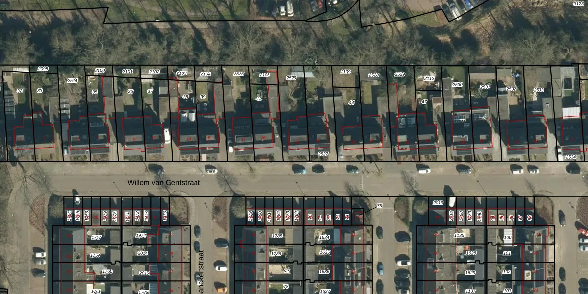 Willem van Gentstraat 21 is gelegen op kadastraal perceel GDP00F2526. Deze kadastrale aanduiding is uniek en wordt gebruikt door het Kadaster om eigendomsrechten en andere zakelijke rechten vast te leggen. Het perceel maakt onderdeel uit van de kadastrale gemeente Geldrop.