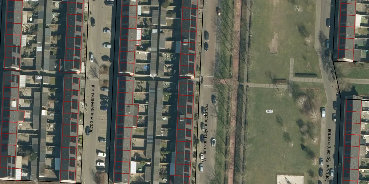 Het perceel waarop Willem van Ruysbroeckstraat 20 staat heeft een oppervlakte van 5495 m². Dit is een zeer groot perceel. De perceeloppervlakte wordt geregistreerd door het Kadaster. Gedetailleerde informatie over de maten van dit perceel kunt u vinden in het rapport Kadastrale kaart met maatvoering van Willem van Ruysbroeckstraat 20.