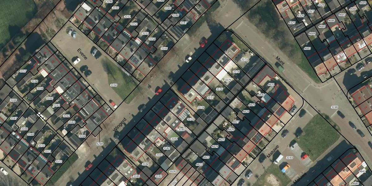 Het perceel waarop Wingerd 13 staat heeft een oppervlakte van 247 m². Dit is een middelgroot perceel. De perceeloppervlakte wordt geregistreerd door het Kadaster. Gedetailleerde informatie over de maten van dit perceel kunt u vinden in het rapport Kadastrale kaart met maatvoering van Wingerd 13.