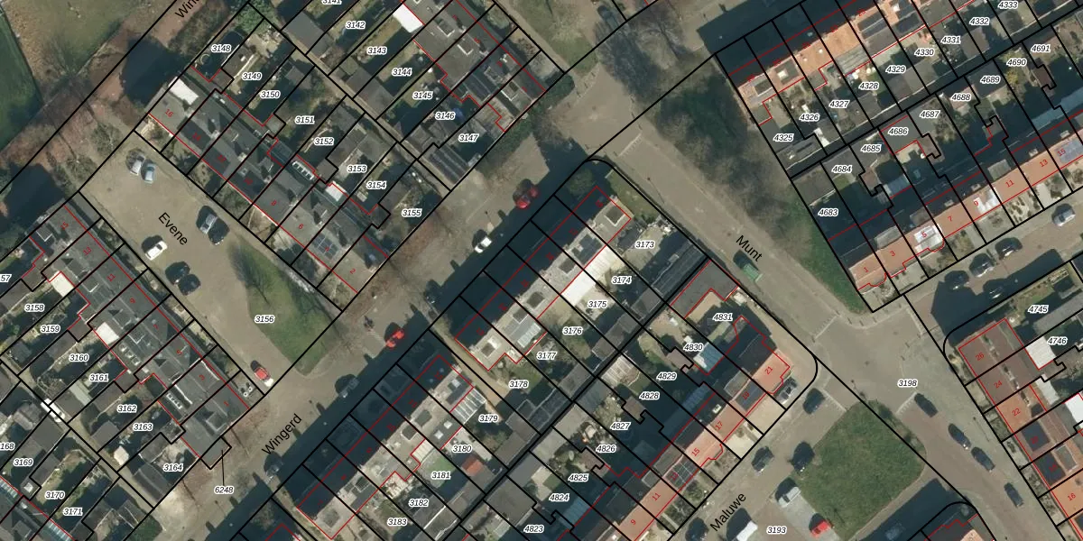 Het perceel waarop Wingerd 16 staat heeft een oppervlakte van 184 m². Dit is een middelgroot perceel. De perceeloppervlakte wordt geregistreerd door het Kadaster. Gedetailleerde informatie over de maten van dit perceel kunt u vinden in het rapport Kadastrale kaart met maatvoering van Wingerd 16.