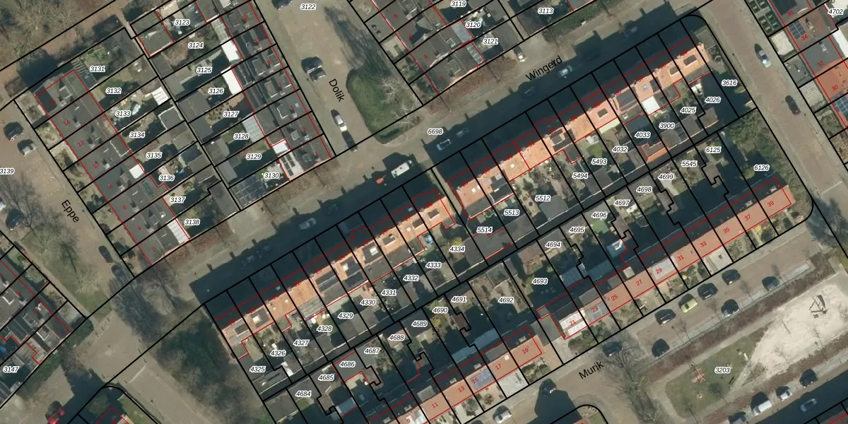 Gebruik de zoekbalk of klik op een perceel voor informatie over de adressen binnen dit perceel.