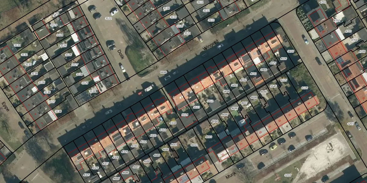 Het perceel waarop Wingerd 30 staat heeft een oppervlakte van 164 m². Dit is een middelgroot perceel. De perceeloppervlakte wordt geregistreerd door het Kadaster. Gedetailleerde informatie over de maten van dit perceel kunt u vinden in het rapport Kadastrale kaart met maatvoering van Wingerd 30.