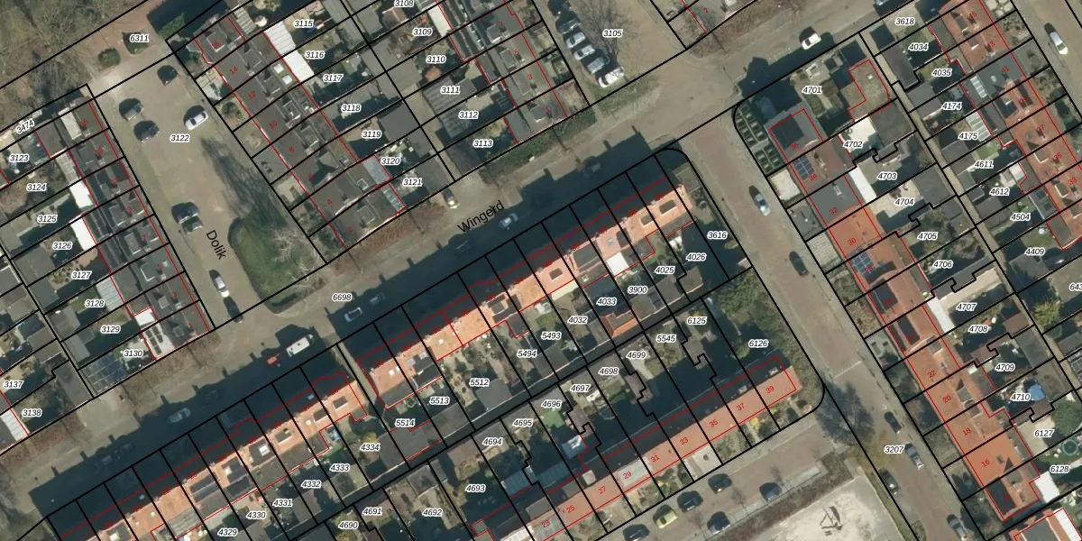 Het perceel waarop Wingerd 35 staat heeft een oppervlakte van 163 m². Dit is een middelgroot perceel. De perceeloppervlakte wordt geregistreerd door het Kadaster. Gedetailleerde informatie over de maten van dit perceel kunt u vinden in het rapport Kadastrale kaart met maatvoering van Wingerd 35.