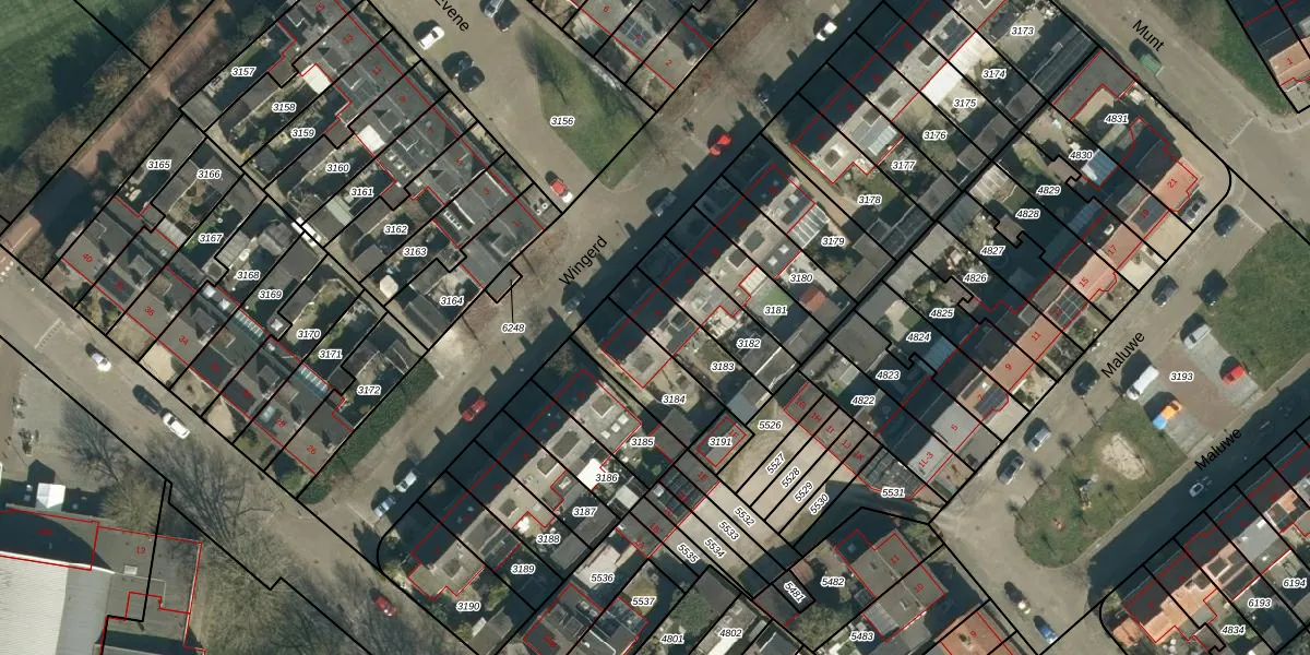 Het perceel waarop Wingerd 8 staat heeft een oppervlakte van 184 m². Dit is een middelgroot perceel. De perceeloppervlakte wordt geregistreerd door het Kadaster. Gedetailleerde informatie over de maten van dit perceel kunt u vinden in het rapport Kadastrale kaart met maatvoering van Wingerd 8.