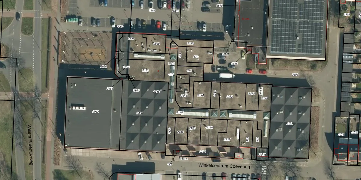 Het perceel waarop Winkelcentrum Coevering 23 staat heeft een oppervlakte van 35 m². Dit is een klein perceel. De perceeloppervlakte wordt geregistreerd door het Kadaster. Gedetailleerde informatie over de maten van dit perceel kunt u vinden in het rapport Kadastrale kaart met maatvoering van Winkelcentrum Coevering 23.