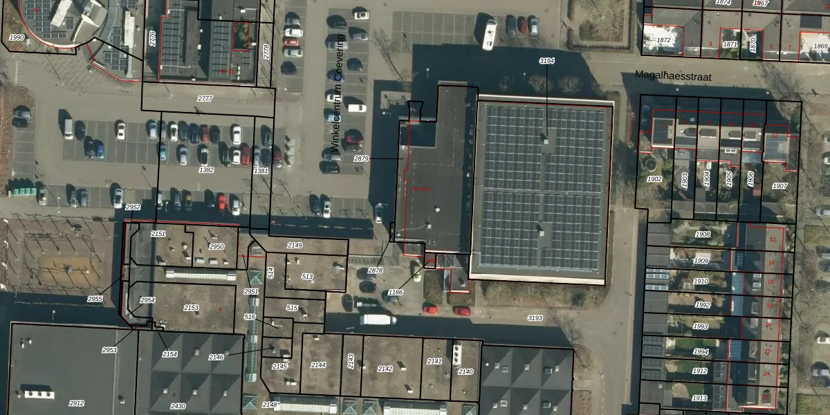 Het perceel waarop Winkelcentrum Coevering 32 staat heeft een oppervlakte van 666 m². Dit is een groot perceel. De perceeloppervlakte wordt geregistreerd door het Kadaster. Gedetailleerde informatie over de maten van dit perceel kunt u vinden in het rapport Kadastrale kaart met maatvoering van Winkelcentrum Coevering 32.