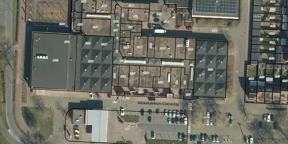 Winkelcentrum Coevering 9 is gelegen op kadastraal perceel GDP00F2136. Deze kadastrale aanduiding is uniek en wordt gebruikt door het Kadaster om eigendomsrechten en andere zakelijke rechten vast te leggen. Het perceel maakt onderdeel uit van de kadastrale gemeente Geldrop.