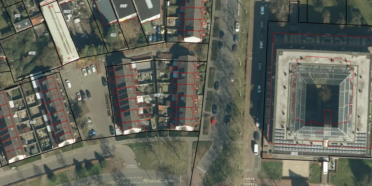 Het adres ligt op het perceel GDP00-F-946, dat zich in de kadastrale gemeente Geldrop bevindt. De oppervlakte van het perceel is 1886 m². Dat is groter dan gemiddeld in Geldrop, waar de gemiddelde perceeloppervlakte op 1101,15 m² ligt. De grootste perceeloppervlakte in de kadastrale gemeente is 51,6 ha. De kleinste oppervlakte bedraagt 0 m². Op het perceel zijn 12 adressen aanwezig. In de Basisregistratie Kadaster (BRK) werden de grenzen van het perceel geregistreerd op 20-12-2010.