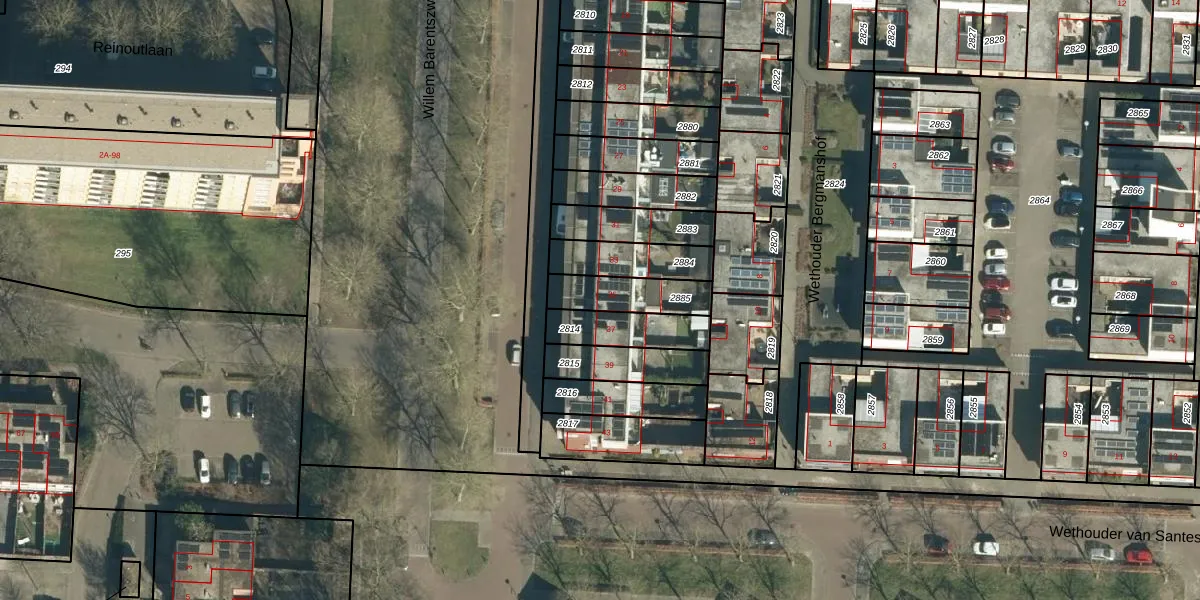 Gebruik de zoekbalk of klik op een perceel voor informatie over de adressen binnen dit perceel.