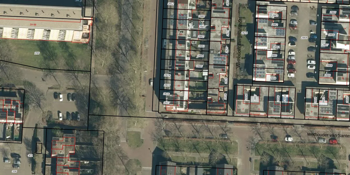 Gebruik de zoekbalk of klik op een perceel voor informatie over de adressen binnen dit perceel.