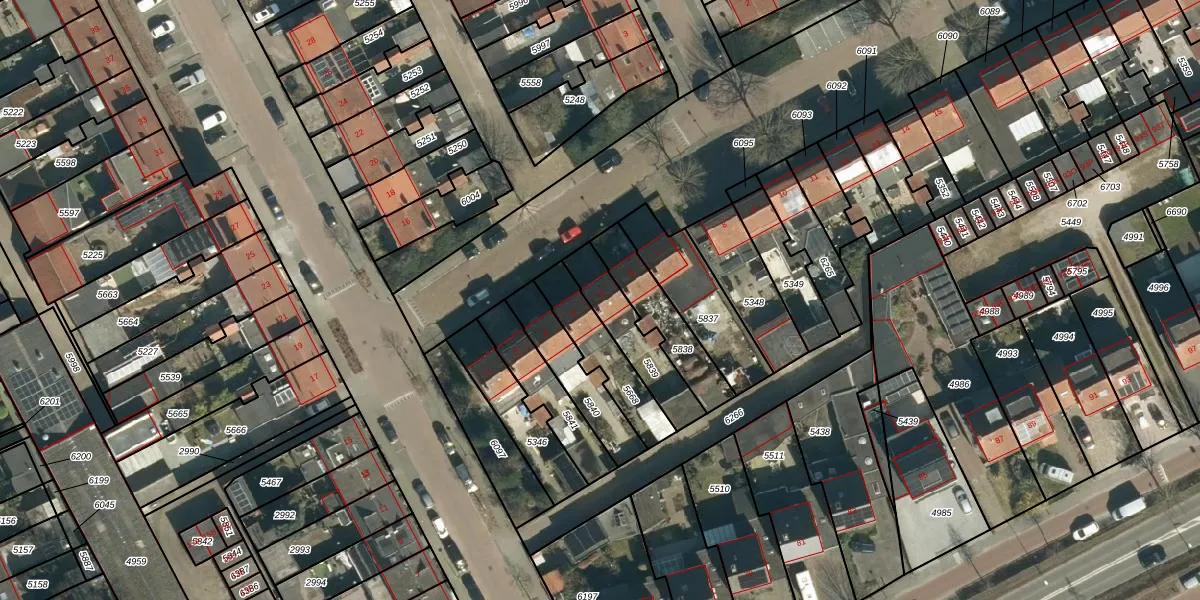 Gebruik de zoekbalk of klik op een perceel voor informatie over de adressen binnen dit perceel.