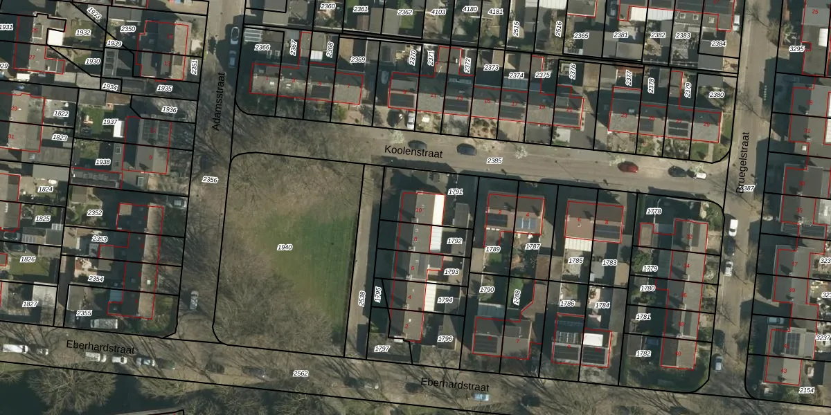 Gebruik de zoekbalk of klik op een perceel voor informatie over de adressen binnen dit perceel.
