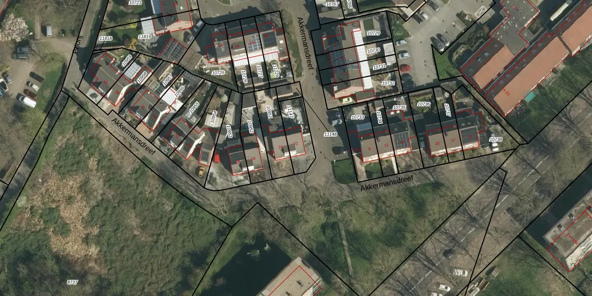 Gebruik de zoekbalk of klik op een perceel voor informatie over de adressen binnen dit perceel.