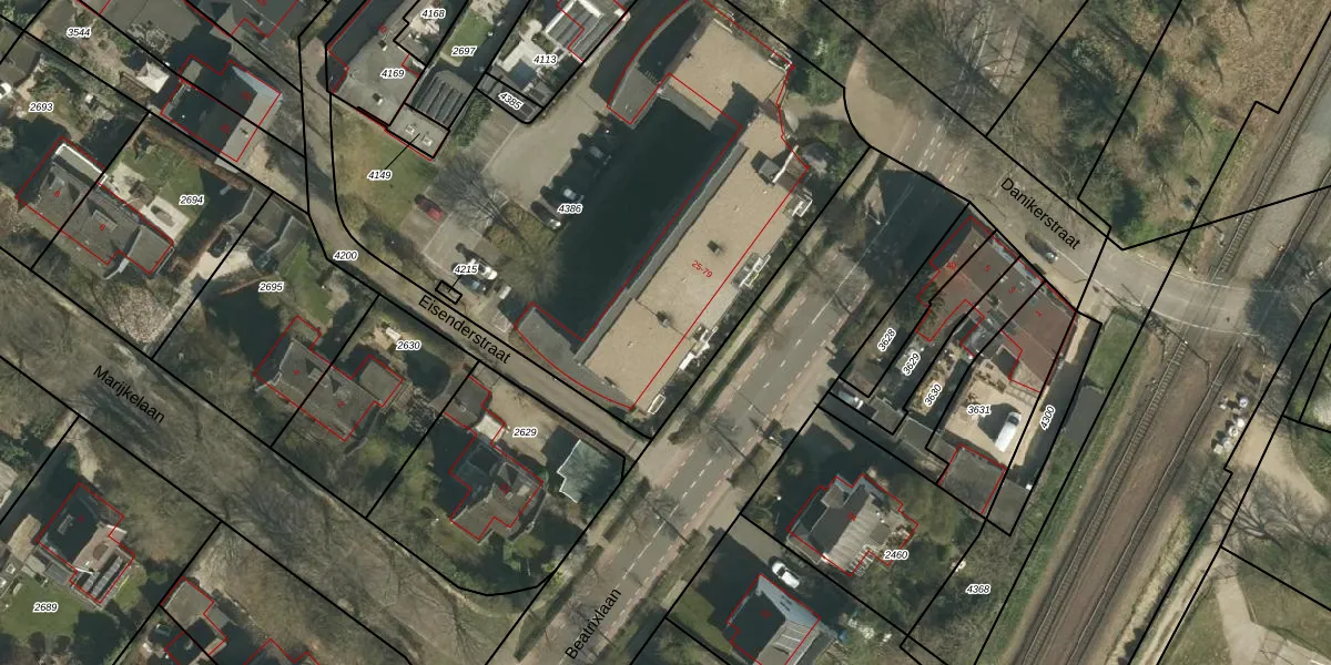 Het perceel waarop Beatrixlaan 27 staat heeft een oppervlakte van 3009 m². Dit is een zeer groot perceel. De perceeloppervlakte wordt geregistreerd door het Kadaster. Gedetailleerde informatie over de maten van dit perceel kunt u vinden in het rapport Kadastrale kaart met maatvoering van Beatrixlaan 27.