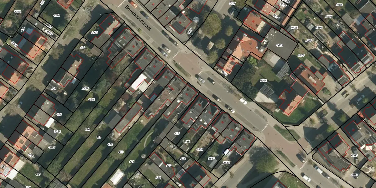Het perceel waarop Beekhoverstraat 40 staat heeft een oppervlakte van 655 m². Dit is een groot perceel. De perceeloppervlakte wordt geregistreerd door het Kadaster. Gedetailleerde informatie over de maten van dit perceel kunt u vinden in het rapport Kadastrale kaart met maatvoering van Beekhoverstraat 40.