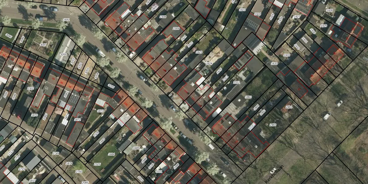 Gebruik de zoekbalk of klik op een perceel voor informatie over de adressen binnen dit perceel.
