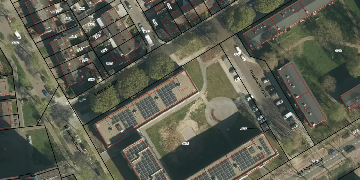 Het perceel waarop Breitnerstraat 113 staat heeft een oppervlakte van 6709 m². Dit is een zeer groot perceel. De perceeloppervlakte wordt geregistreerd door het Kadaster. Gedetailleerde informatie over de maten van dit perceel kunt u vinden in het rapport Kadastrale kaart met maatvoering van Breitnerstraat 113.
