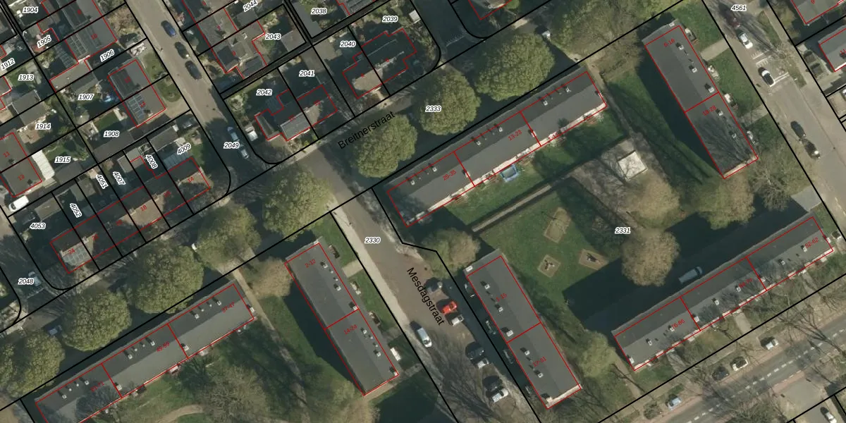 Het perceel waarop Breitnerstraat 35 staat heeft een oppervlakte van 6465 m². Dit is een zeer groot perceel. De perceeloppervlakte wordt geregistreerd door het Kadaster. Gedetailleerde informatie over de maten van dit perceel kunt u vinden in het rapport Kadastrale kaart met maatvoering van Breitnerstraat 35.