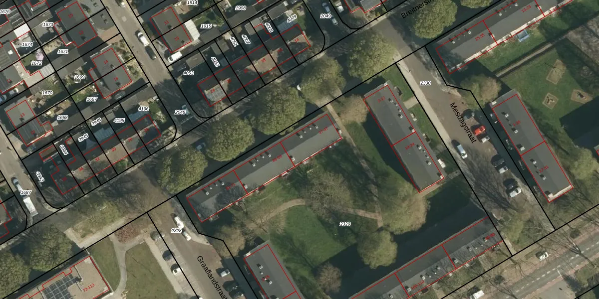 Het perceel waarop Breitnerstraat 43 staat heeft een oppervlakte van 6175 m². Dit is een zeer groot perceel. De perceeloppervlakte wordt geregistreerd door het Kadaster. Gedetailleerde informatie over de maten van dit perceel kunt u vinden in het rapport Kadastrale kaart met maatvoering van Breitnerstraat 43.