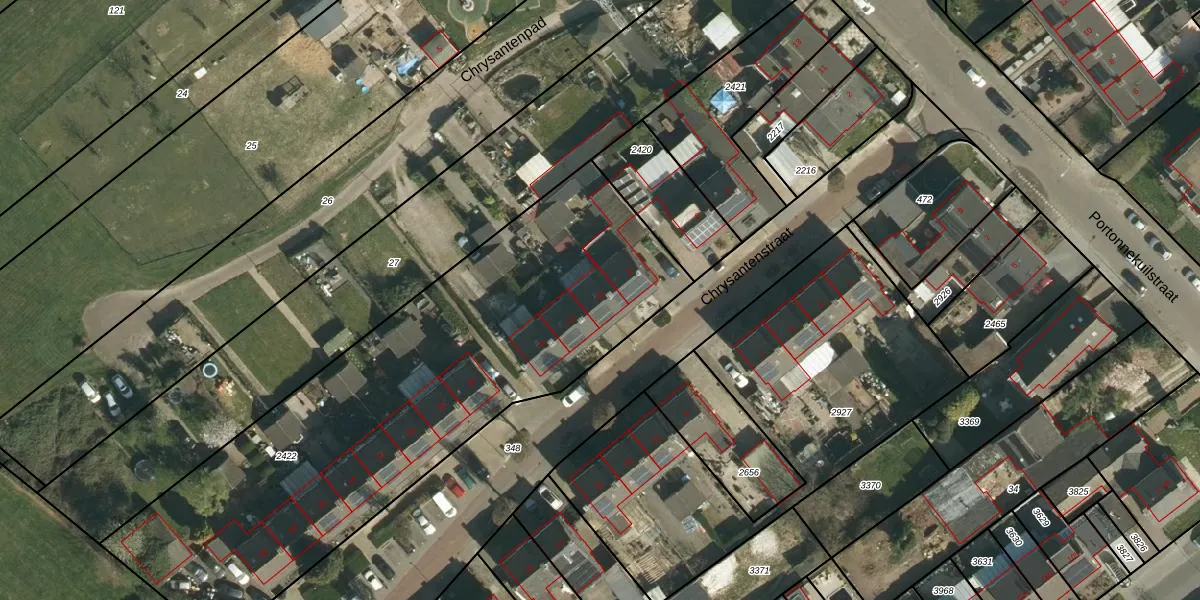 Het perceel waarop Chrysantenstraat 10 staat heeft een oppervlakte van 3845 m². Dit is een zeer groot perceel. De perceeloppervlakte wordt geregistreerd door het Kadaster. Gedetailleerde informatie over de maten van dit perceel kunt u vinden in het rapport Kadastrale kaart met maatvoering van Chrysantenstraat 10.