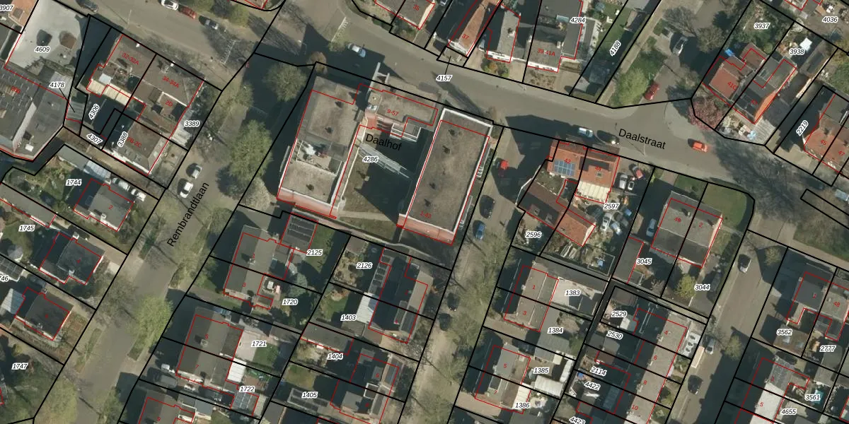 Het perceel waarop Daalhof 1 staat heeft een oppervlakte van 1772 m². Dit is een zeer groot perceel. De perceeloppervlakte wordt geregistreerd door het Kadaster. Gedetailleerde informatie over de maten van dit perceel kunt u vinden in het rapport Kadastrale kaart met maatvoering van Daalhof 1.