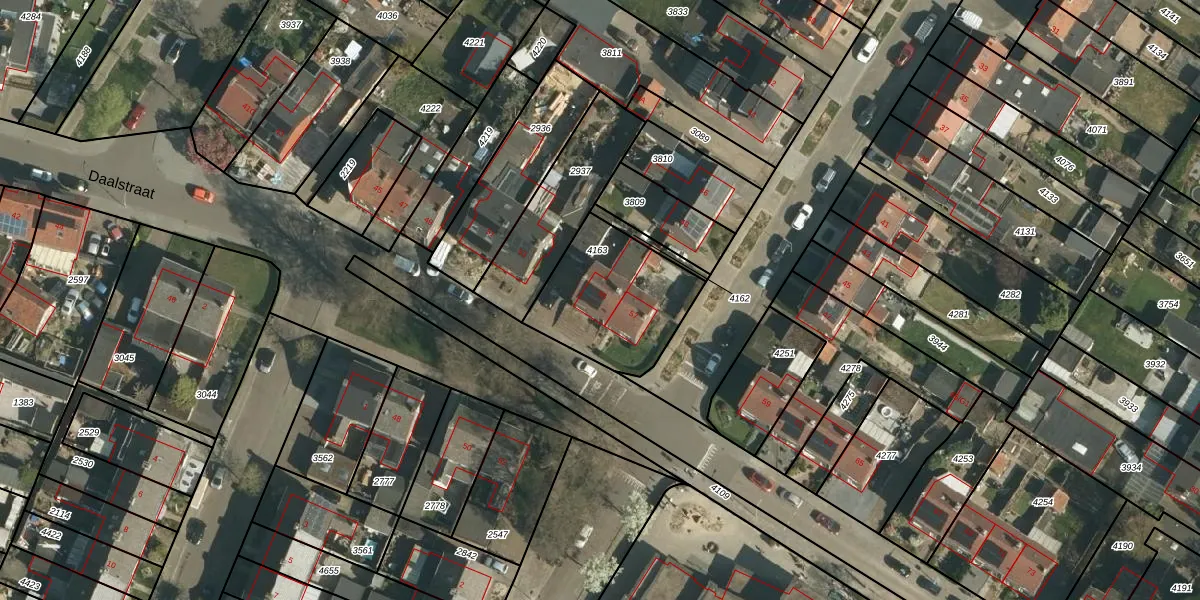 Daalstraat 55 is gelegen op kadastraal perceel GLN00C4163. Deze kadastrale aanduiding is uniek en wordt gebruikt door het Kadaster om eigendomsrechten en andere zakelijke rechten vast te leggen. Het perceel maakt onderdeel uit van de kadastrale gemeente Geleen.