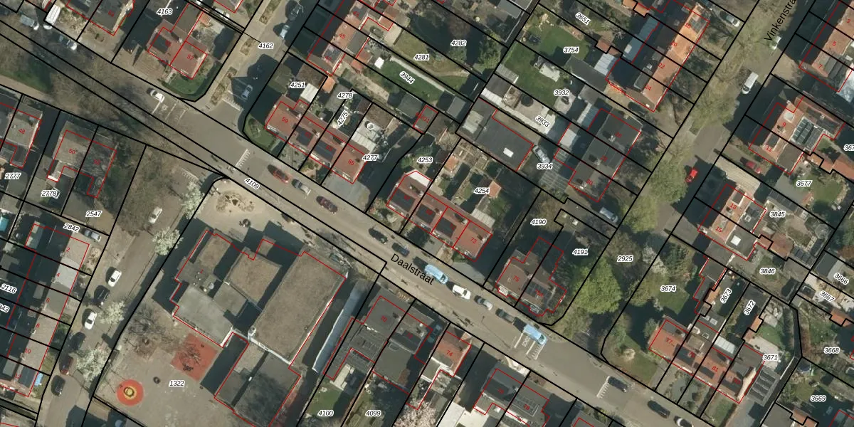 Het perceel waarop Daalstraat 69 staat heeft een oppervlakte van 619 m². Dit is een groot perceel. De perceeloppervlakte wordt geregistreerd door het Kadaster. Gedetailleerde informatie over de maten van dit perceel kunt u vinden in het rapport Kadastrale kaart met maatvoering van Daalstraat 69.