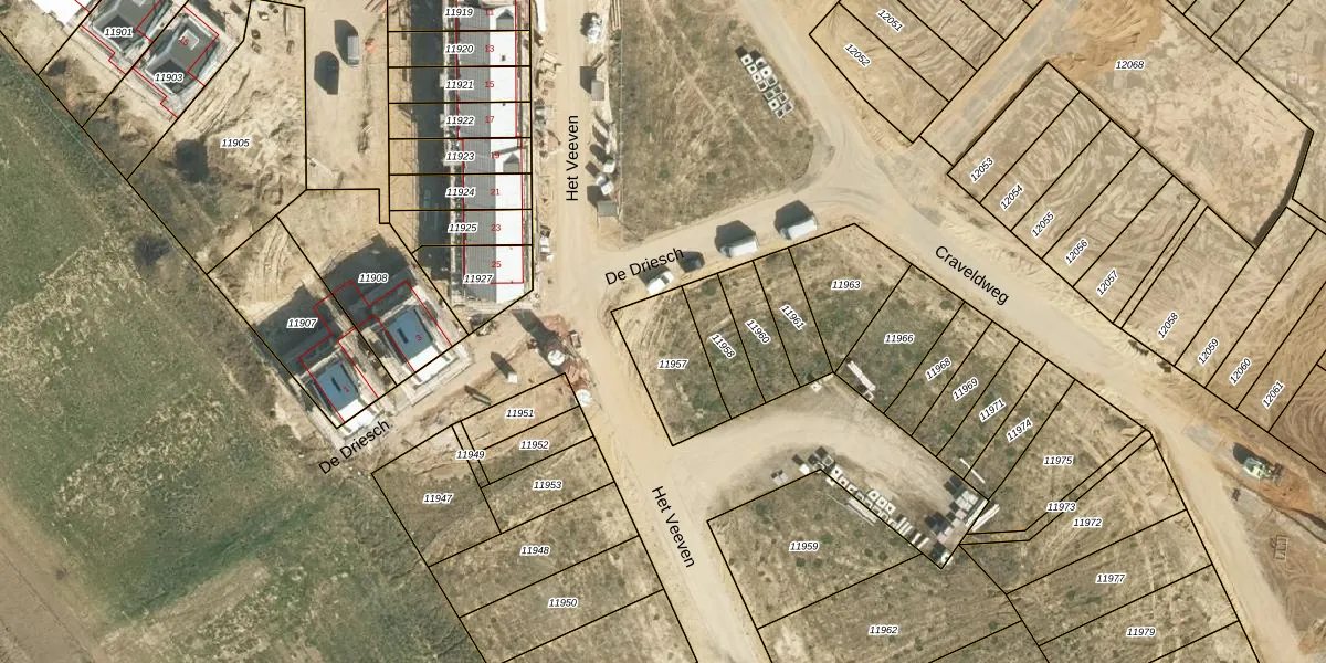 Gebruik de zoekbalk of klik op een perceel voor informatie over de adressen binnen dit perceel.