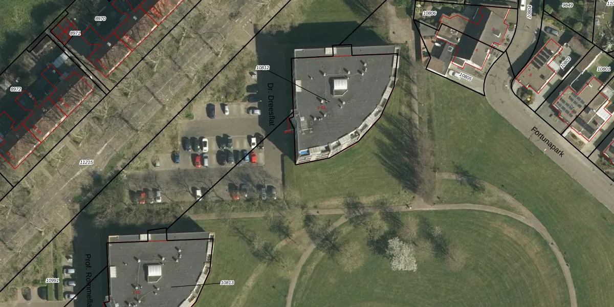 Het perceel waarop Dr. Dreesflat 17 staat heeft een oppervlakte van 962 m². Dit is een groot perceel. De perceeloppervlakte wordt geregistreerd door het Kadaster. Gedetailleerde informatie over de maten van dit perceel kunt u vinden in het rapport Kadastrale kaart met maatvoering van Dr. Dreesflat 17.