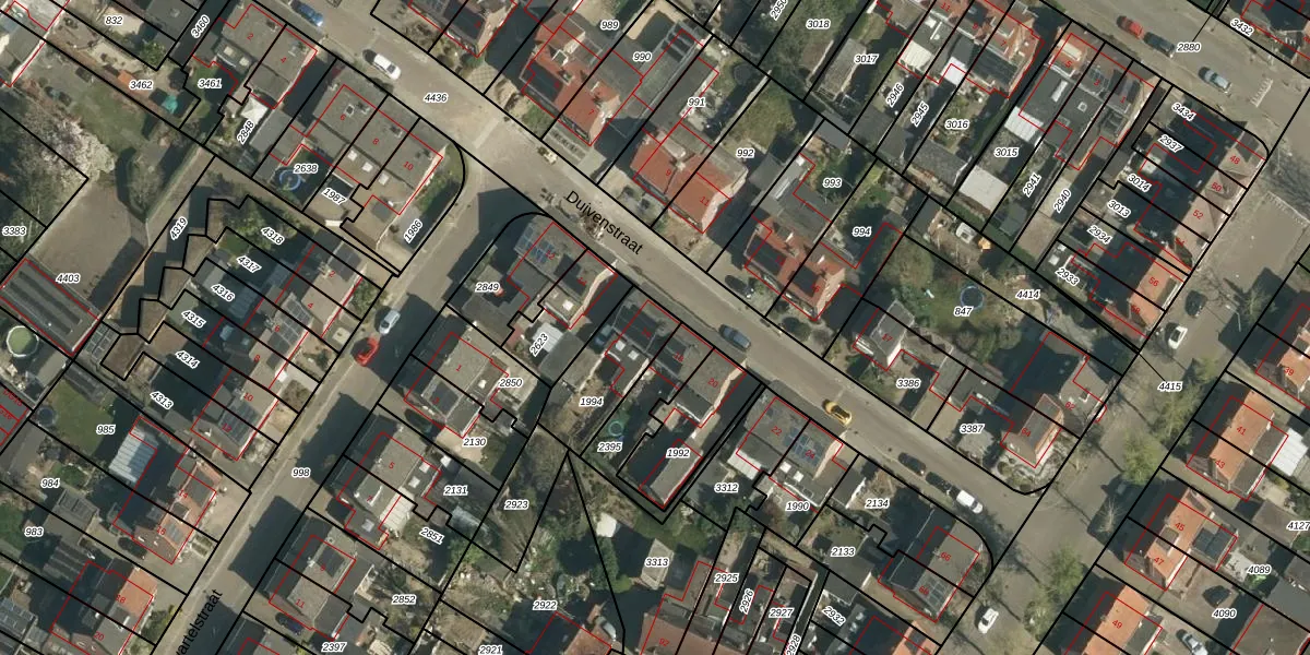 Het perceel waarop Duivenstraat 16 staat heeft een oppervlakte van 235 m². Dit is een middelgroot perceel. De perceeloppervlakte wordt geregistreerd door het Kadaster. Gedetailleerde informatie over de maten van dit perceel kunt u vinden in het rapport Kadastrale kaart met maatvoering van Duivenstraat 16.