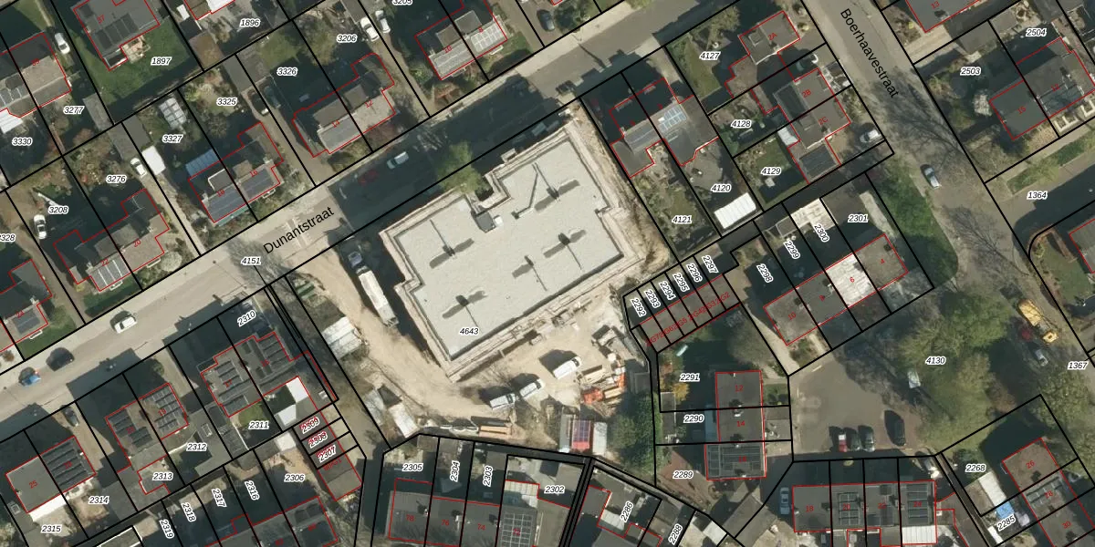 Het perceel waarop Dunantstraat 11-B-4 staat heeft een oppervlakte van 3000 m². Dit is een zeer groot perceel. De perceeloppervlakte wordt geregistreerd door het Kadaster. Gedetailleerde informatie over de maten van dit perceel kunt u vinden in het rapport Kadastrale kaart met maatvoering van Dunantstraat 11-B-4.
