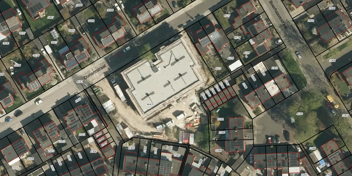 Het perceel waarop Dunantstraat 11-C-4 staat heeft een oppervlakte van 3000 m². Dit is een zeer groot perceel. De perceeloppervlakte wordt geregistreerd door het Kadaster. Gedetailleerde informatie over de maten van dit perceel kunt u vinden in het rapport Kadastrale kaart met maatvoering van Dunantstraat 11-C-4.