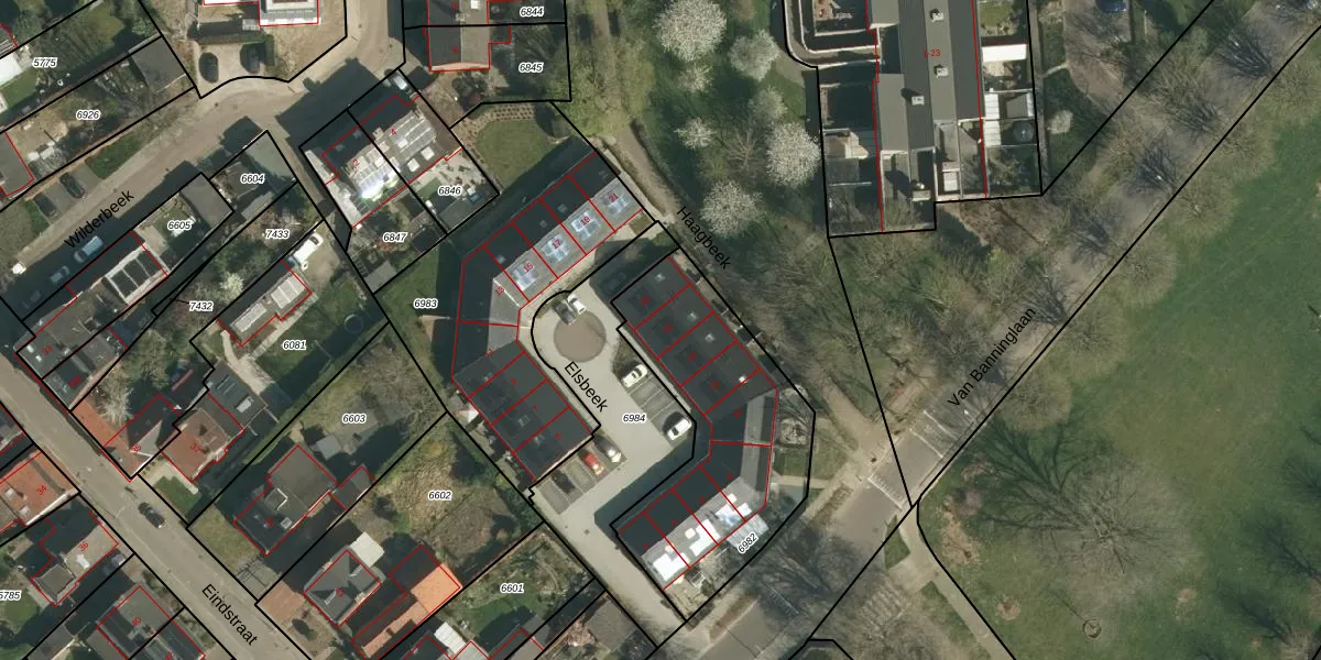 Het perceel waarop Elsbeek 16 staat heeft een oppervlakte van 955 m². Dit is een groot perceel. De perceeloppervlakte wordt geregistreerd door het Kadaster. Gedetailleerde informatie over de maten van dit perceel kunt u vinden in het rapport Kadastrale kaart met maatvoering van Elsbeek 16.