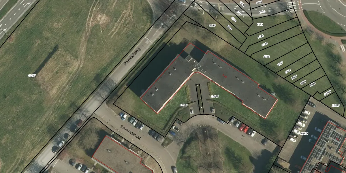 Het perceel waarop Emmaplein 1 staat heeft een oppervlakte van 4239 m². Dit is een zeer groot perceel. De perceeloppervlakte wordt geregistreerd door het Kadaster. Gedetailleerde informatie over de maten van dit perceel kunt u vinden in het rapport Kadastrale kaart met maatvoering van Emmaplein 1.