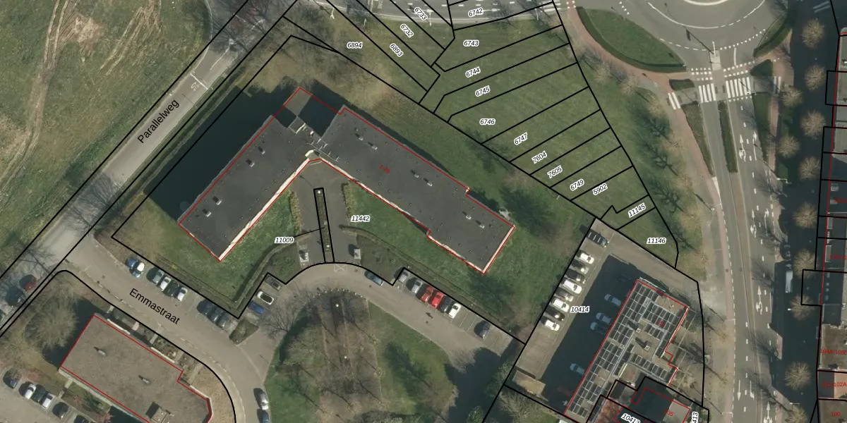 Het perceel waarop Emmaplein 14 staat heeft een oppervlakte van 4239 m². Dit is een zeer groot perceel. De perceeloppervlakte wordt geregistreerd door het Kadaster. Gedetailleerde informatie over de maten van dit perceel kunt u vinden in het rapport Kadastrale kaart met maatvoering van Emmaplein 14.