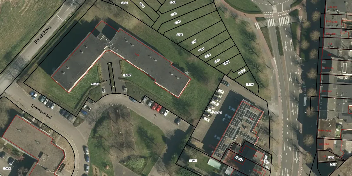 Emmaplein 28 is gelegen op kadastraal perceel GLN00A11442. Deze kadastrale aanduiding is uniek en wordt gebruikt door het Kadaster om eigendomsrechten en andere zakelijke rechten vast te leggen. Het perceel maakt onderdeel uit van de kadastrale gemeente Geleen.