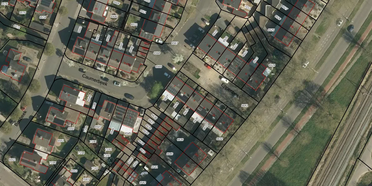 Gebruik de zoekbalk of klik op een perceel voor informatie over de adressen binnen dit perceel.