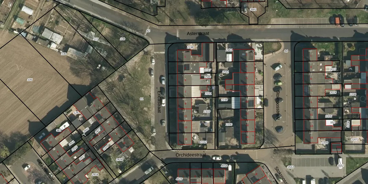 Gebruik de zoekbalk of klik op een perceel voor informatie over de adressen binnen dit perceel.